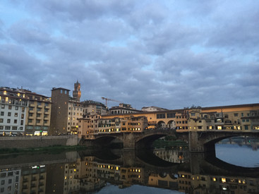 Ensuite il faut vous y balader à plusieurs moments de la journée. Le matin tôt, afin de le voir désert et de pouvoir en profiter rien que pour vous. Et quand je dis tôt, rassurez-vous ce n'est pas 6h00 du matin. Pour ceux qui me connaissent, j'ai du mal à être matinale. Nous nous sommes rendus sur le Ponte Vecchio vers 8h30 et il était encore vide de touristes - nous étions au mois d'octobre, cela joue peut être sur l'affluence. C'est plaisant de s'y rendre en pleine journée, pour avoir l'effervescence des boutiques de joailleries ouvertes. Pour le plaisir des yeux seulement, car il faut faire chauffer la carte bleue pour s'y offrir un bijou. Enfin, y aller à la tombée du jour pour attendre le coucher du soleil et voir le pont s'illuminer.