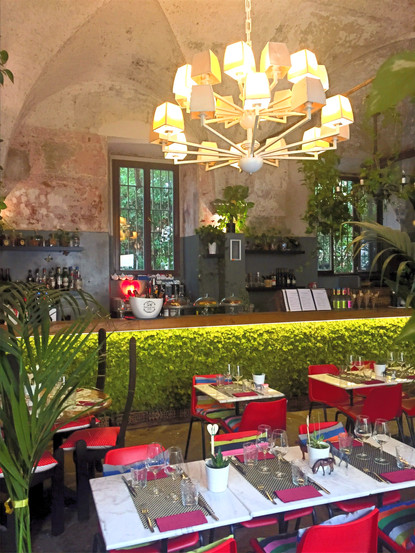 C'est mon coup de coeur en terme de restaurant à Florence. Et pourtant, je ne partais pas gagnante. C'était notre dernier jour complet à Florence, nous nous dirigions vers l'appartement car il pleuvait et nous n'avions pas prévu de manger dehors le midi. Plutôt agacée par le mauvais temps, je me dépêchais. Sur la route mes parents s'arrêtent devant un restaurant et me propose d'y manger. Sincèrement, de l'extérieur il ne me disait rien mais pourquoi pas, on ne dit pas non à un resto. Franchement, j'aurais regretté de ne pas y être entrée, car ça fait partie de mon top adresse à Florence. Quand on rentre je m'aperçois que l'ambiance est dingue : mélange de couleurs, de baroque et de végétal, je suis fan. L'auberge est végétarienne et gluten free, un bonus ! Et les recettes sont originales, que demande le peuple! La carte est réduite pour laisser la place aux produits de saisons, c'est parfait, je suis conquise. Nous avons opté pour : un risotto au potimarron et pecorino, et des spaghettis à la crème de brocoli et piment! Vous avez compris, vous pouvez y aller les yeux fermés et en plus cela vous fera découvrir le quartier de l'Oltrarno.